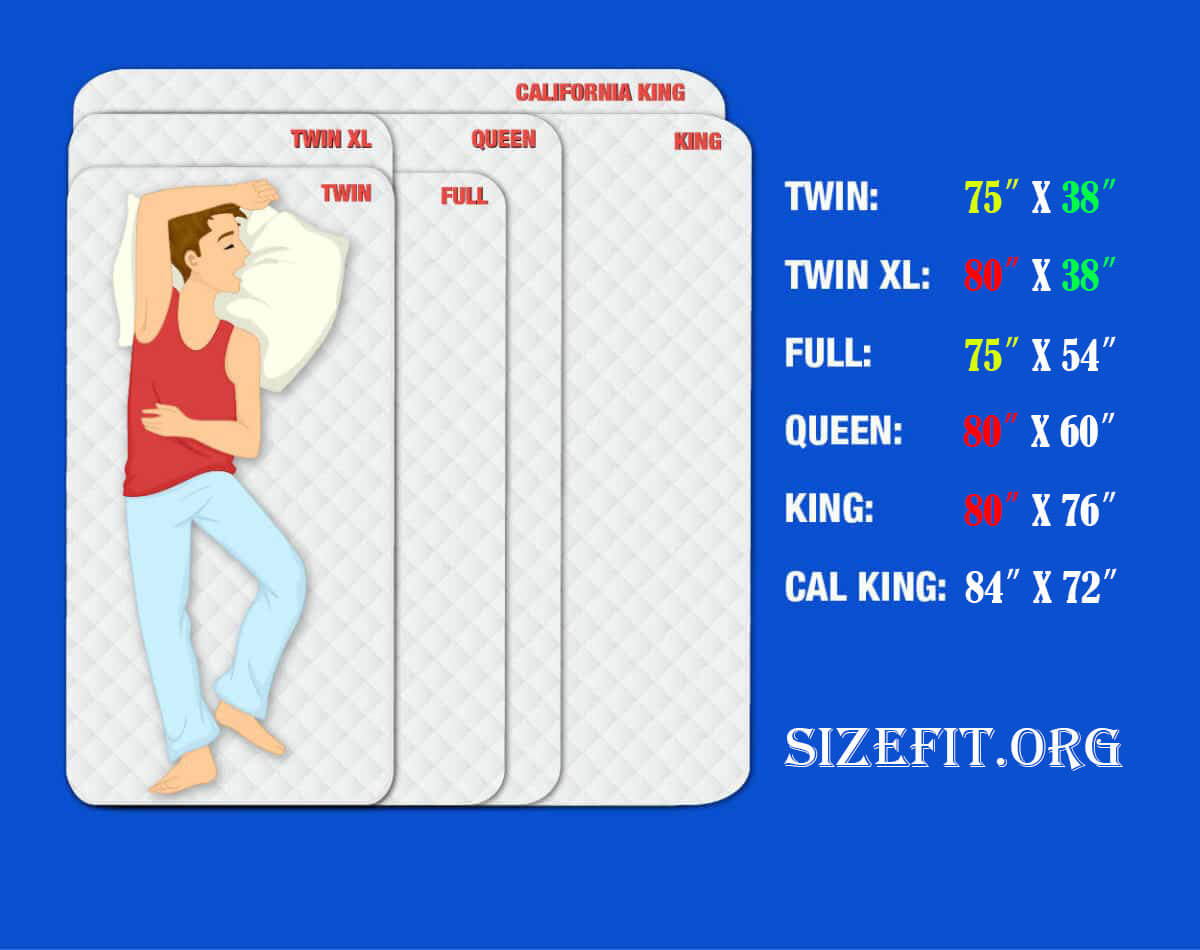 Complete mattress size chart with dimensions for all standard sizes.